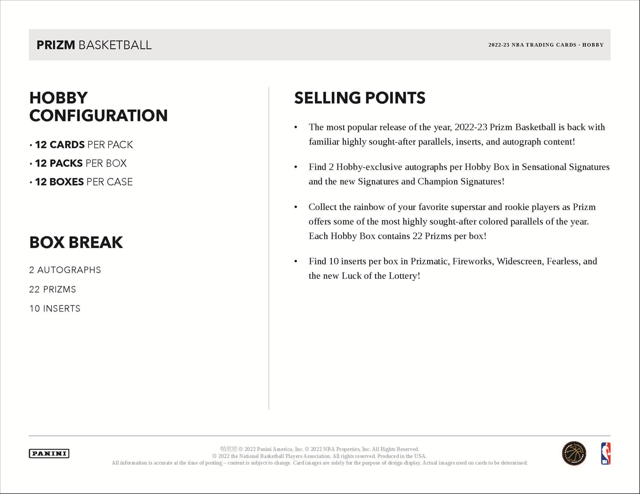 - The most popular release of the year, 2022-23 Prizm Basketball is back with familiar highly sought-after parallels, inserts, and autograph content!