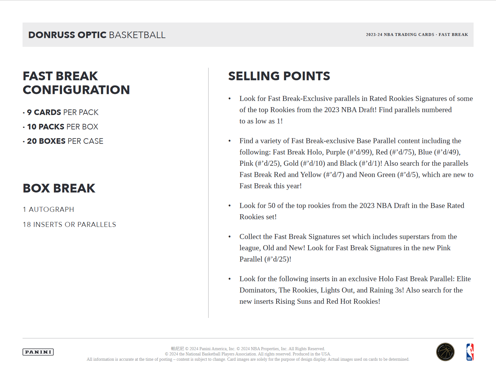 - Look for Fast Break-Exclusive parallels in Rated Rookies Signatures of some of the top Rookies from the 2023 NBA Draft! Find parallels numbered to as low as 1!