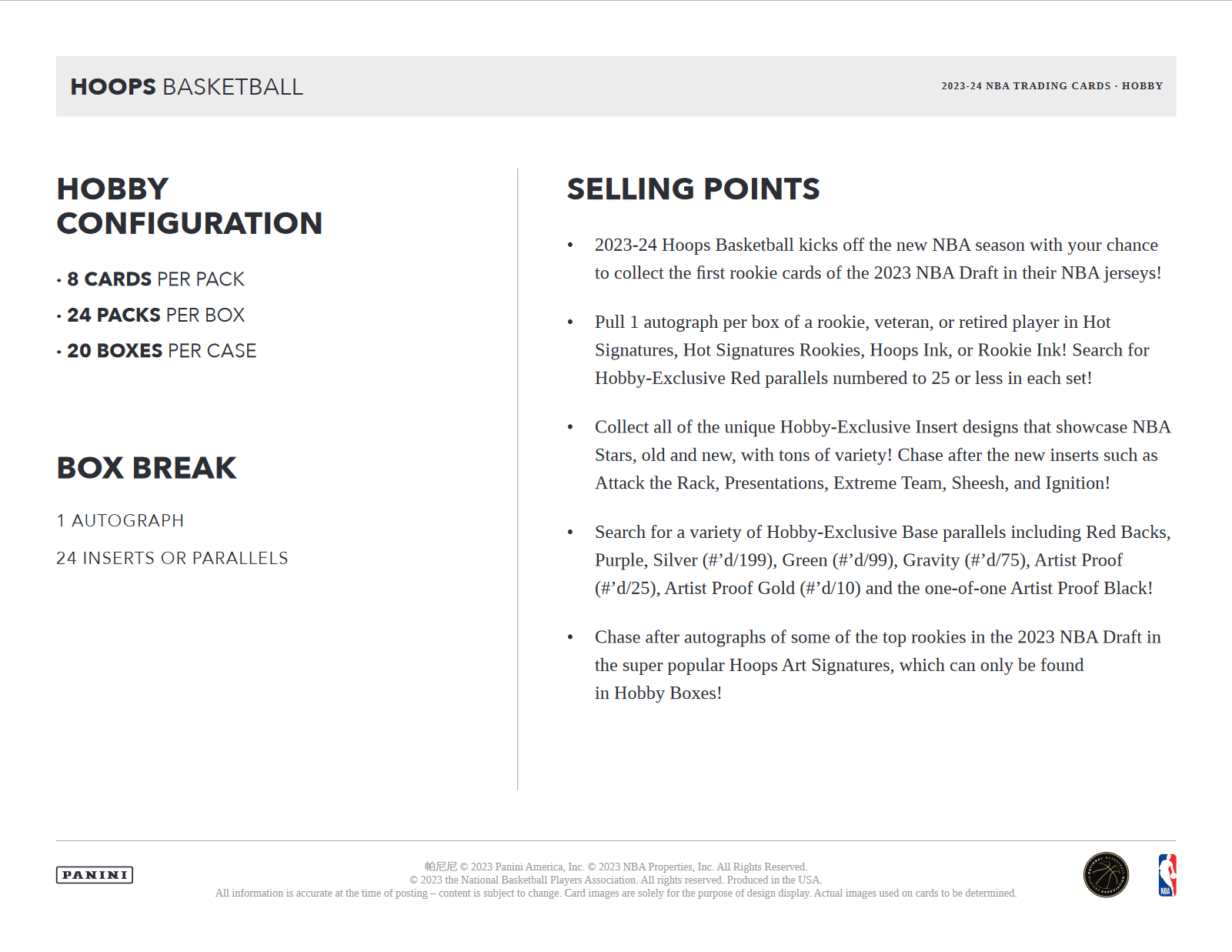 - Chase after autographs of some of the top rookies in the 2023 NBA Draft in the super popular Hoops Art Signatures, which can only be found in Hobby Boxes!