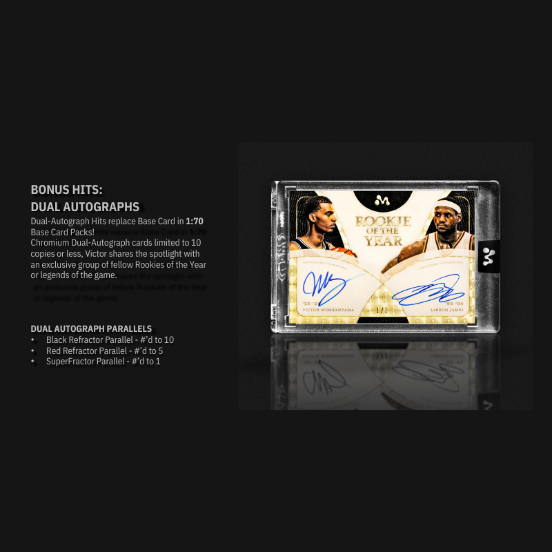 - This high-end trading card product commemorates Victor Wembanyama’s rookie season dominance with an unprecedented collection of Chromium autographs, inscriptions and game-worn memorabilia from the 2023/24 season.