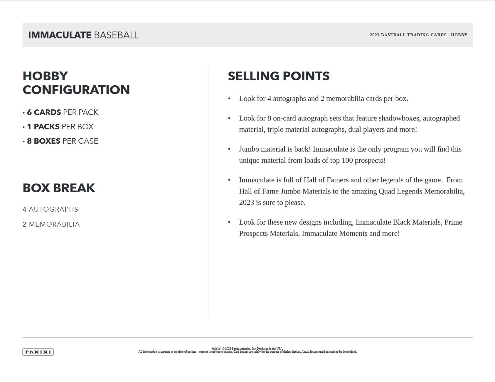 - Jumbo material is back! Immaculate is the only program you will find this unique material from loads of top 100 prospects!