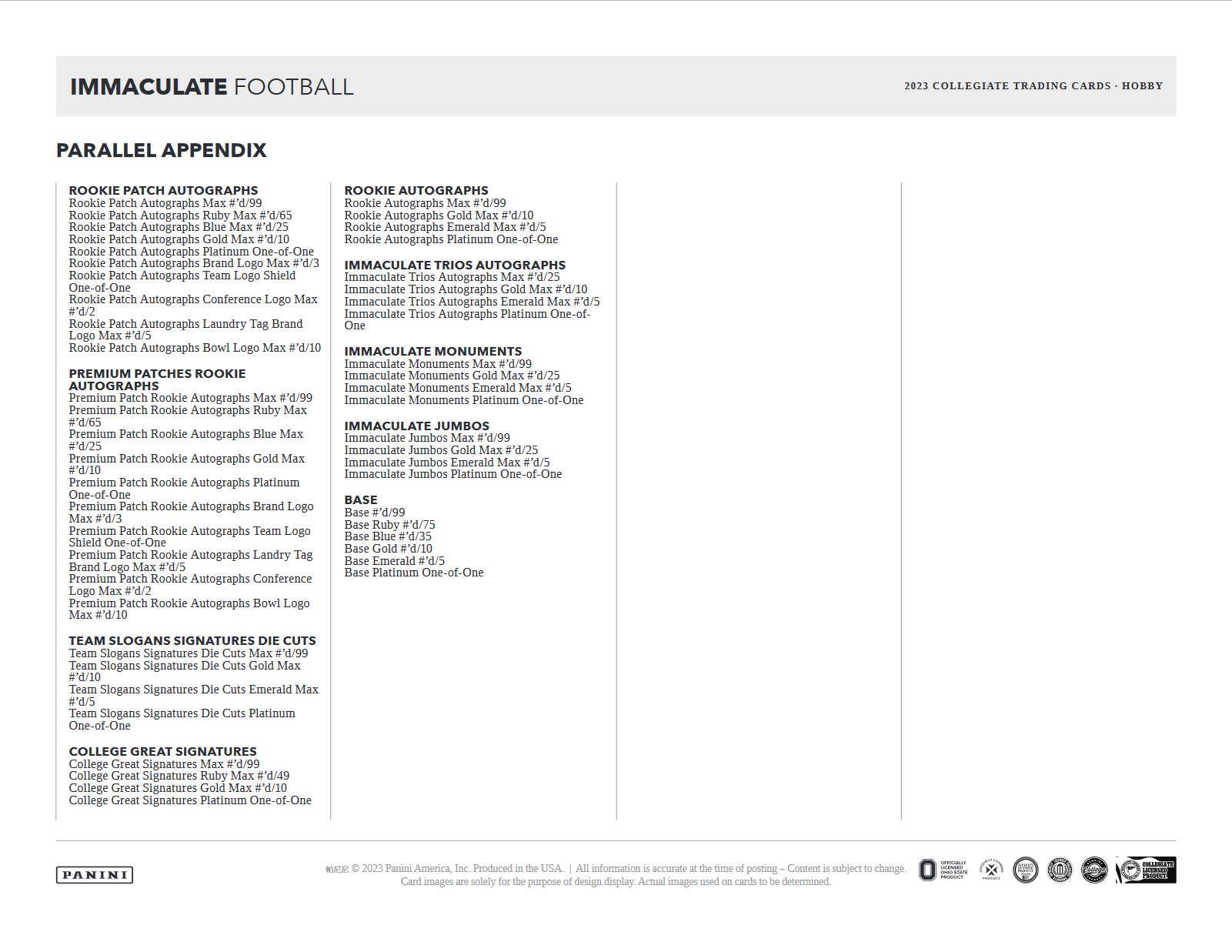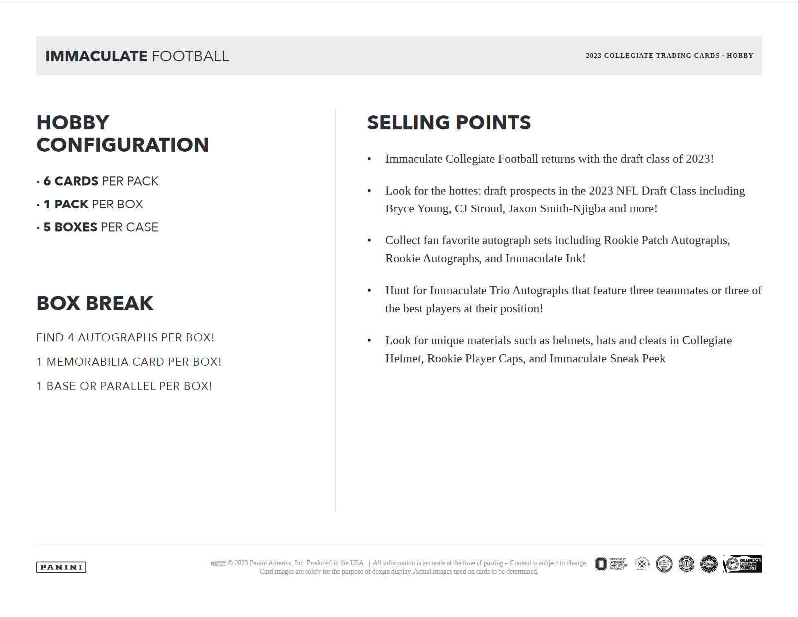 2023 Panini Immaculate Collegiate Football Hobby Box