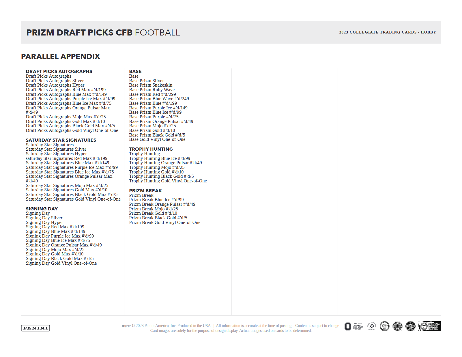- 2023 Prizm Draft Picks will have a base set that contains 200 of the best former college stars, as well as the first officially licensed cards of the best up and coming stars.